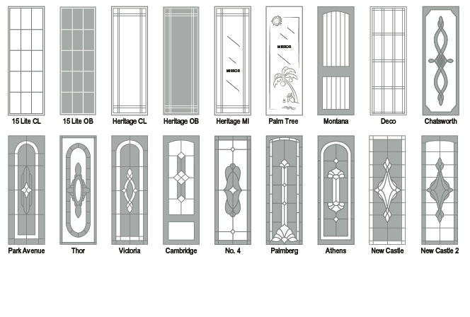 CL=Clear Glass • OB=Obscure Glass • MI=Mirror